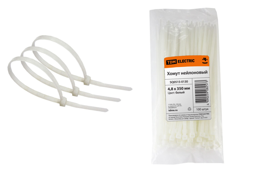 Хомут 4,8х350мм нейлон (белый) (100шт) TDM