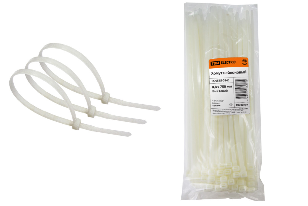 Хомут 8,8х750мм нейлон (белый) (100шт) TDM