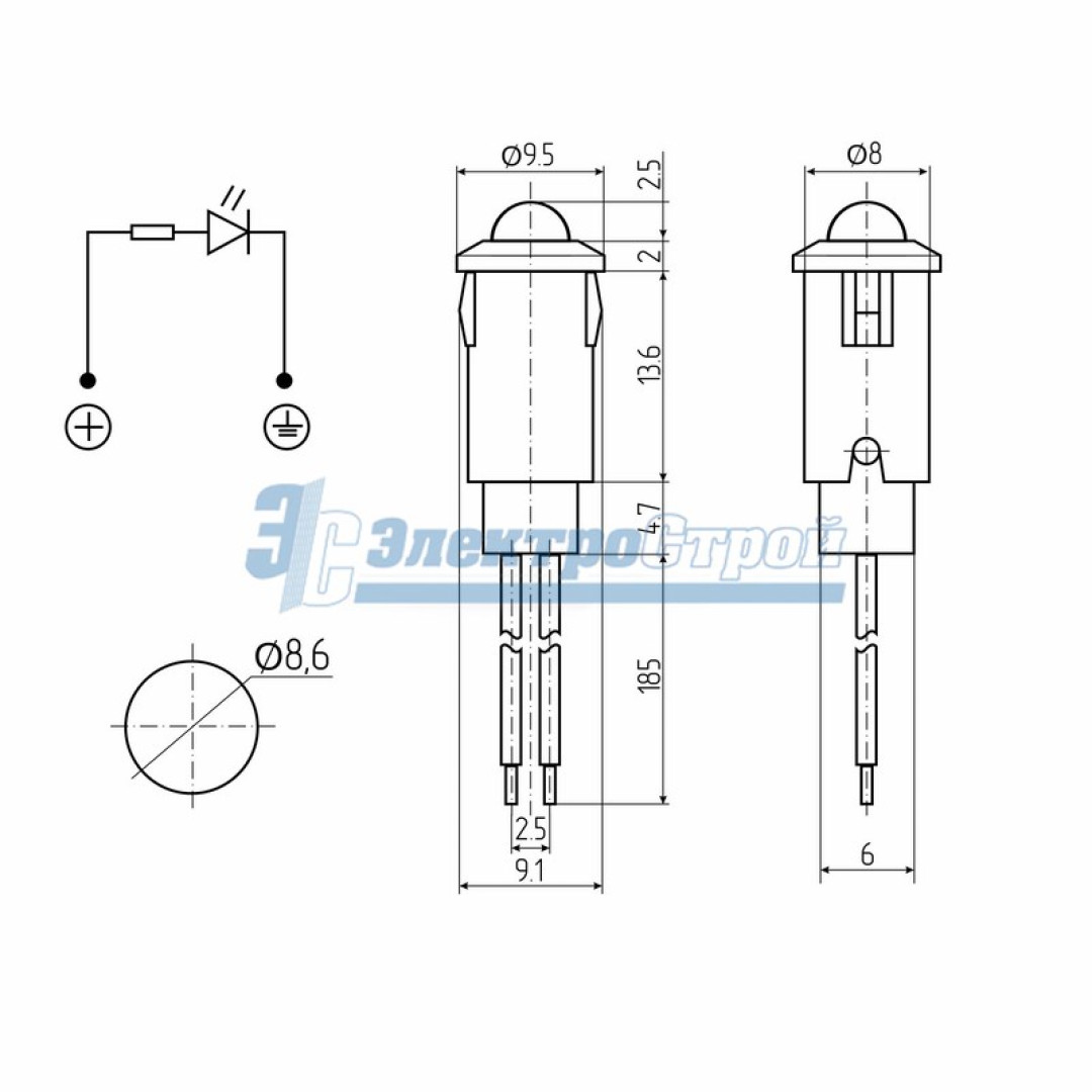 Индикатор Малый Ø8 12V с проводом синий LED REXANT