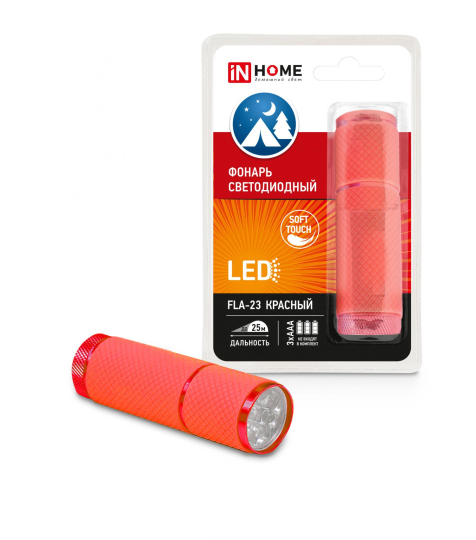 Фонарь светодиодный FLA-23 алюминиевый 9хLED 3хААА КРАСНЫЙ IN HOME