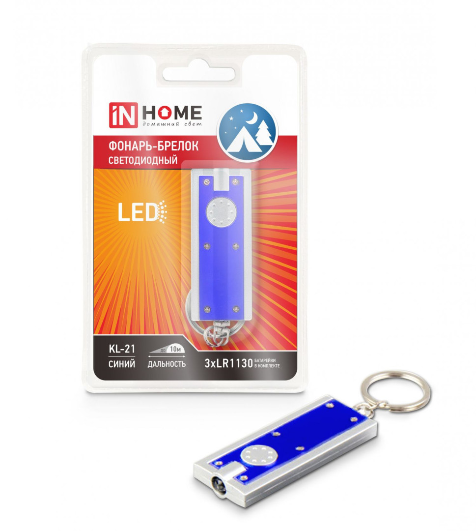 Брелок светодиодный KL-21 пластиковый с встроенной батарейкой СИНИЙ IN HOME