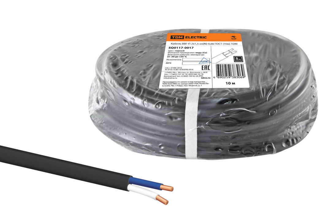 Кабель ВВГ-П 2х1,5 ок(N)-0,66 ГОСТ (10м) TDM