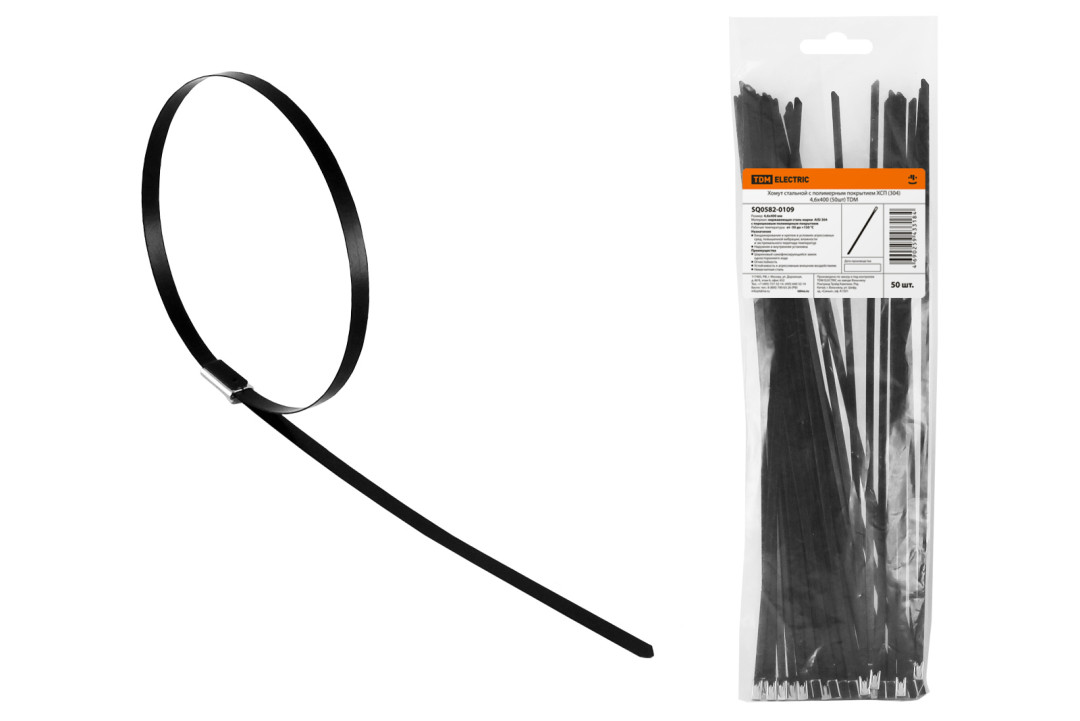 Хомут стальной с полимерным покрытием ХСП (304) 4,6х400 (50шт) TDM