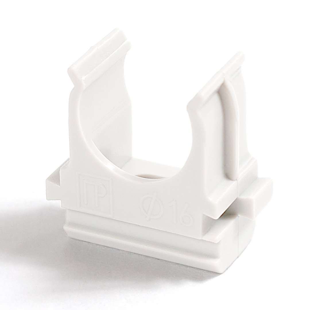 Крепёж-клипса для труб Полистирол белая д16 (100шт/2000шт уп/кор) Промрукав