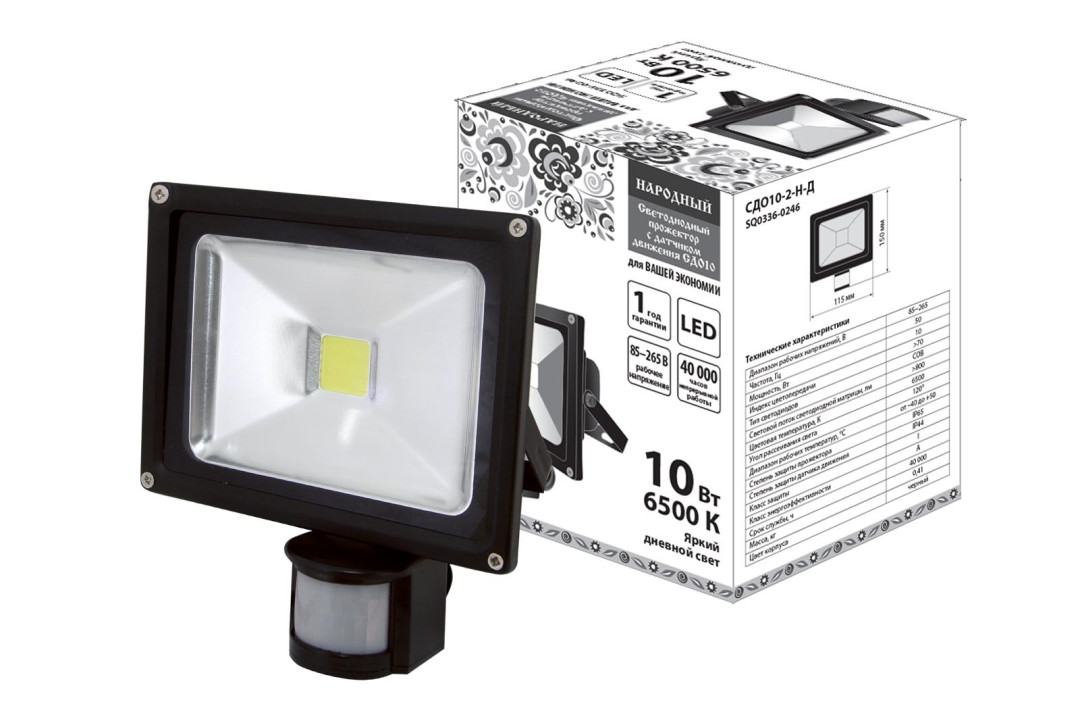 Прожектор светодиодный СДО10-2-Н-Д (с датчиком) 10Вт, 6500К, черный, Народный