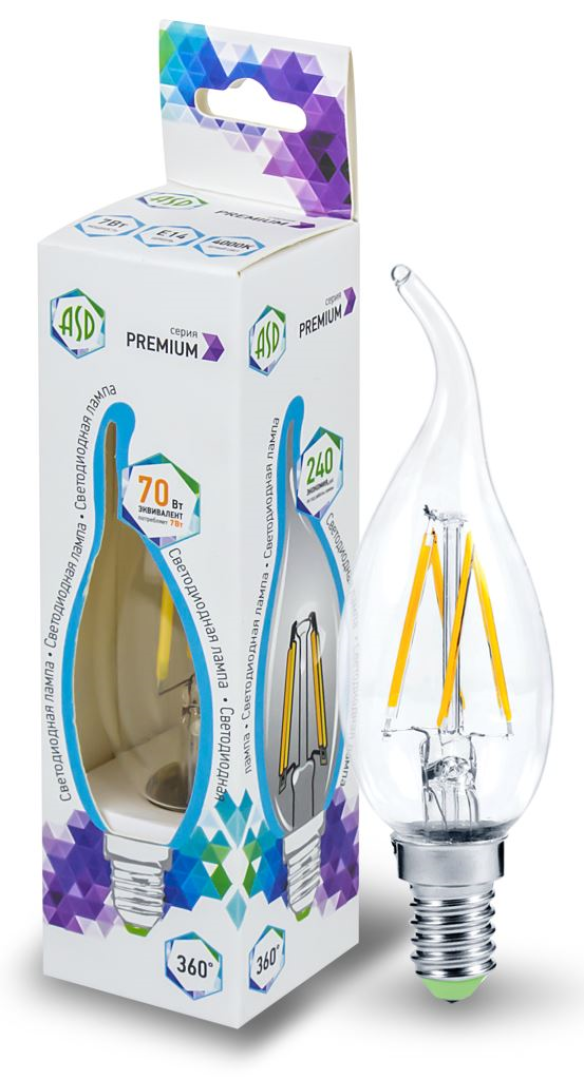 Лампа светодиодная LED-СВЕЧА НА ВЕТРУ-PREMIUM 7Вт 230В Е14 4000К 630Лм прозрачная ASD