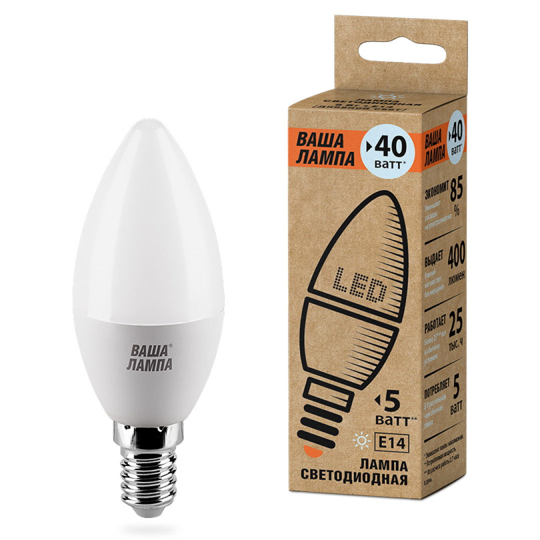 Лампа LED ВАША ЛАМПА C37 5Вт Е14 4000К 1/50