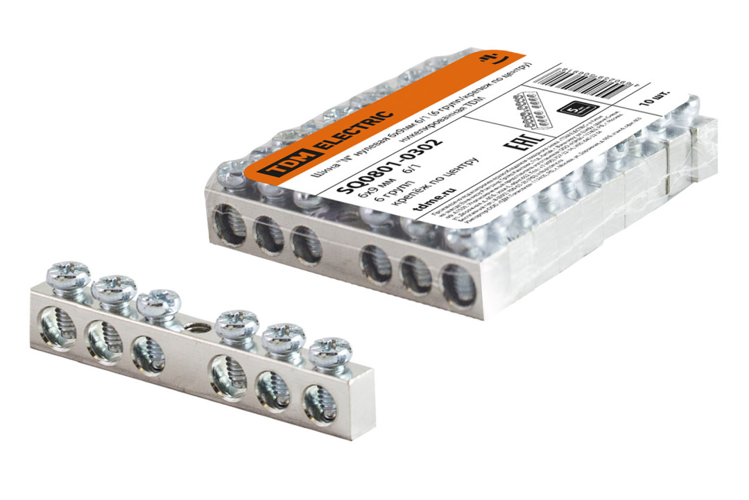 Шина "N" нулевая 6х9мм 10/2 (10 групп/крепеж по краям) TDM инд. стикер TDM