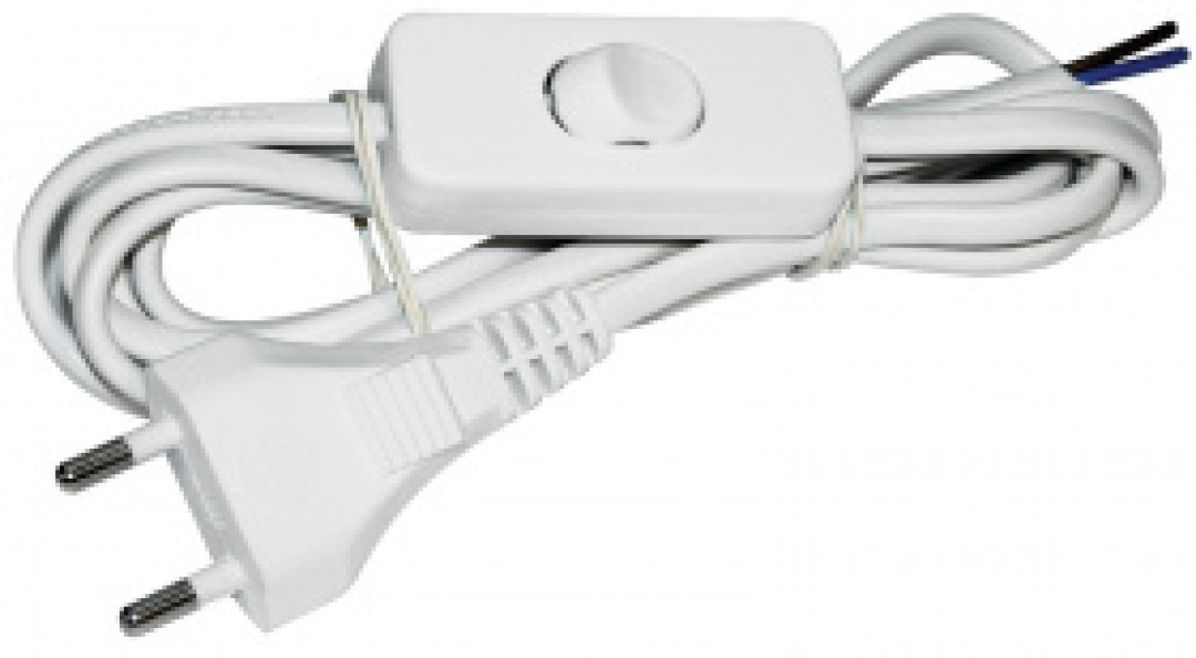 Шнур УШ-1КВ опрессованный с выкл. 2м 2х0,75мм2 белый IEK