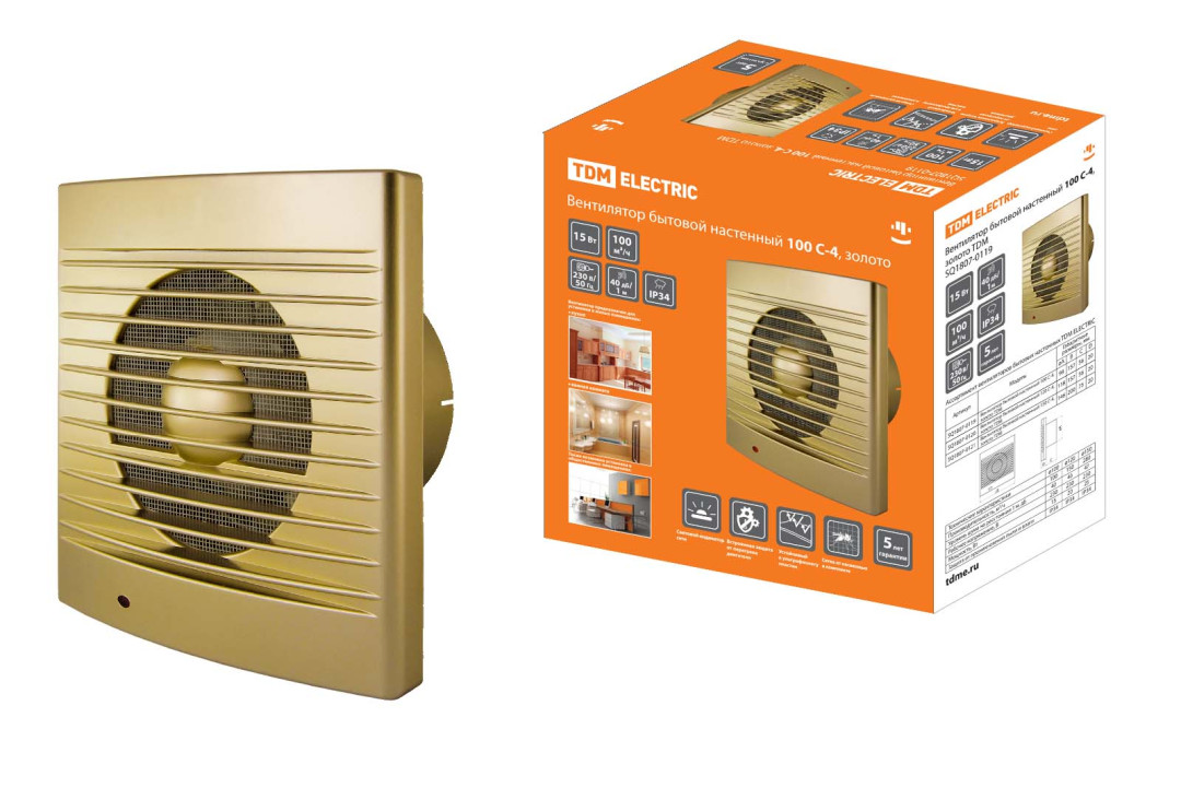 Вентилятор бытовой настенный 100 С-4, золото TDM