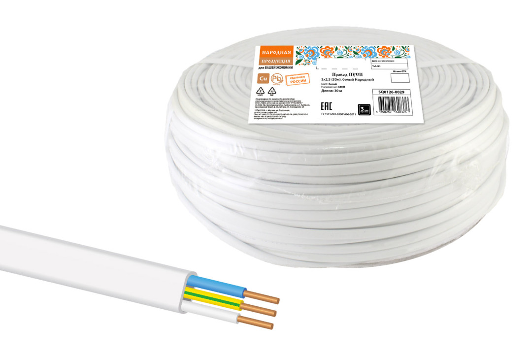 Провод ПУСП 3х2,5 (30м), белый Народный