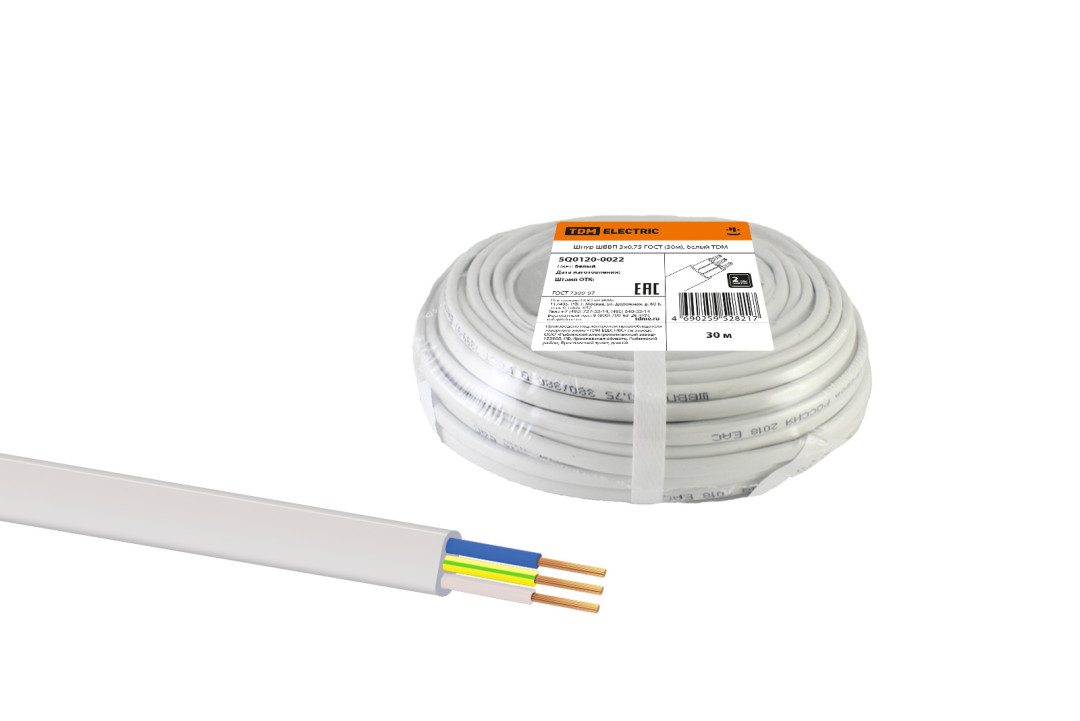 Шнур ШВВП 3х0,75 ГОСТ (30м), белый TDM