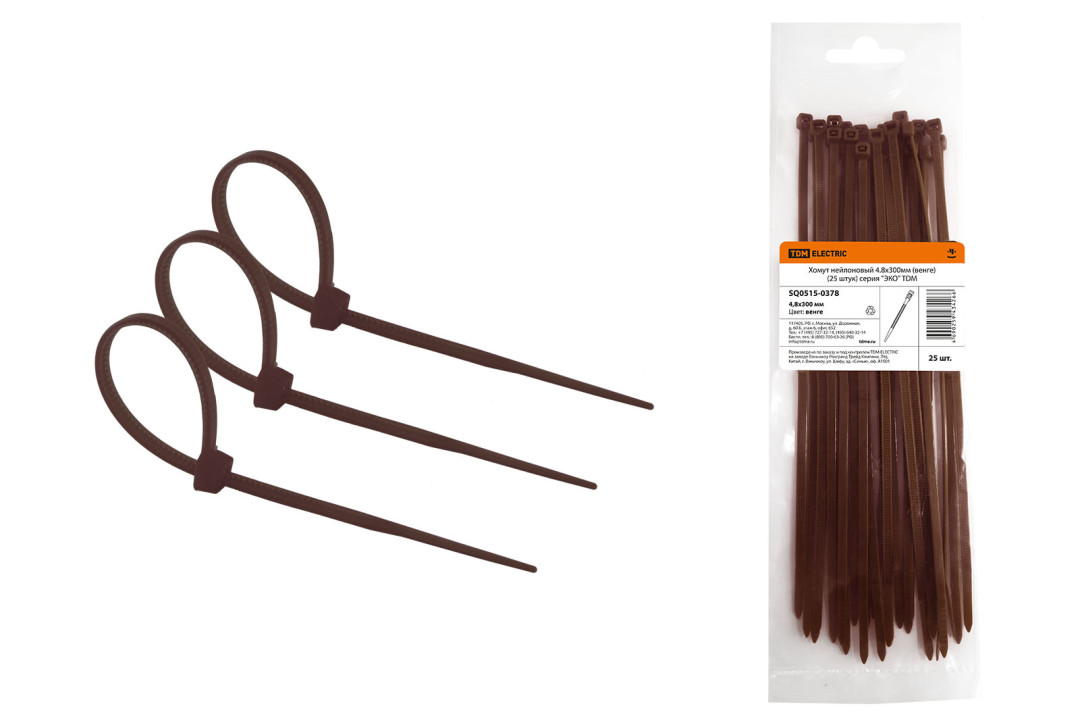 Хомут нейлоновый 4.8х300мм (венге) (25 штук) серия "ЭКО" TDM