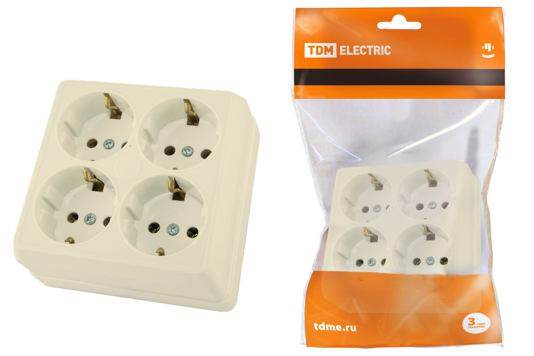 Розетка четырехместная 2П+3 открытой установки IP20 16A сл.кость "Ладога" TDM