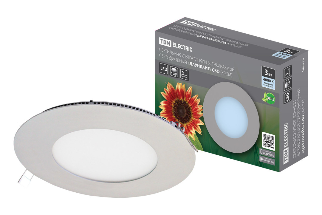 Светильник ультратонкий встраиваемый светодиодный "Даунлайт" СВО (хром) 3 Вт 4000К TDM