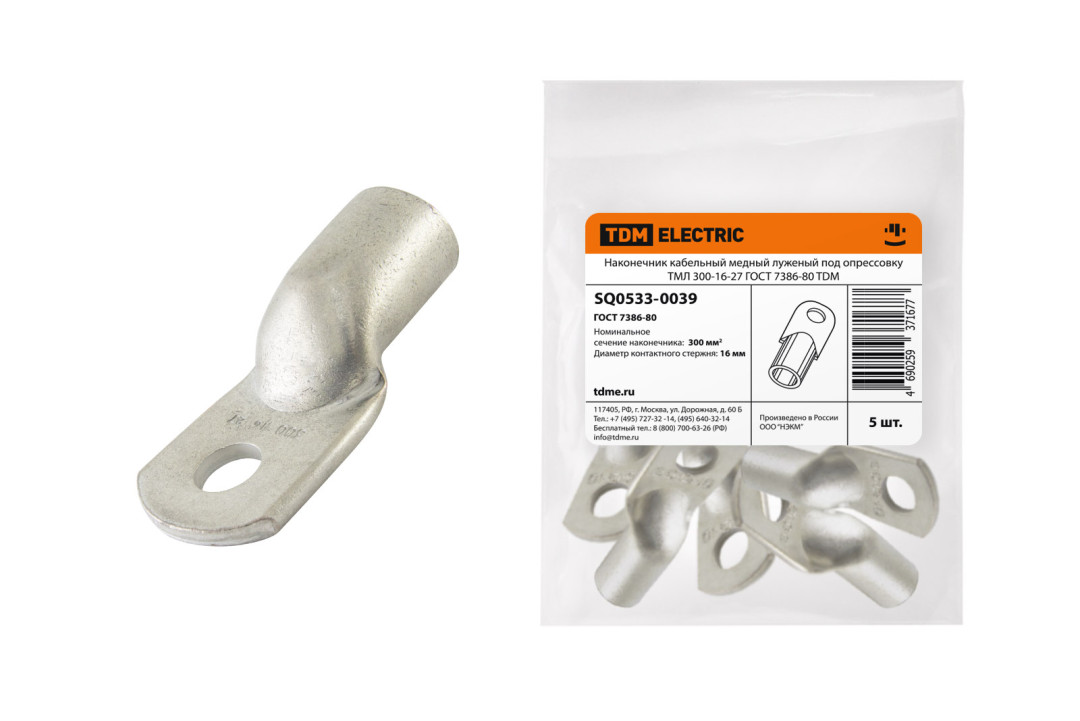 Наконечник медный луженый ТМЛ 300-16-27 ГОСТ 7386-80 TDM