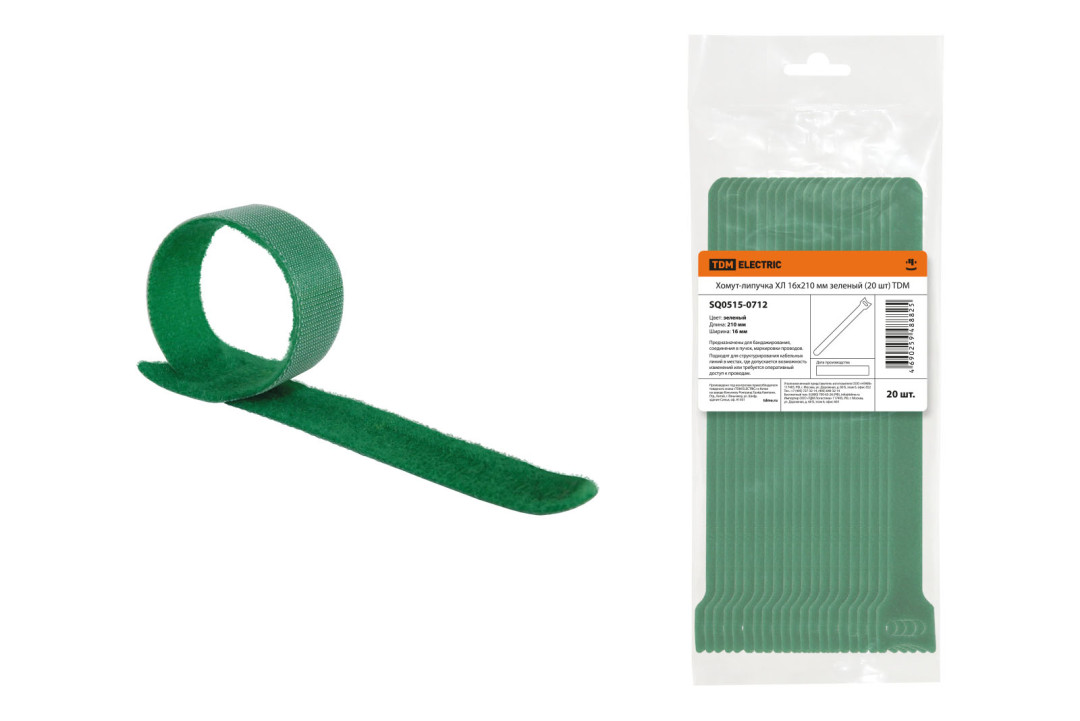 Хомут-липучка ХЛ 16х210 мм зеленый (20 шт) TDM